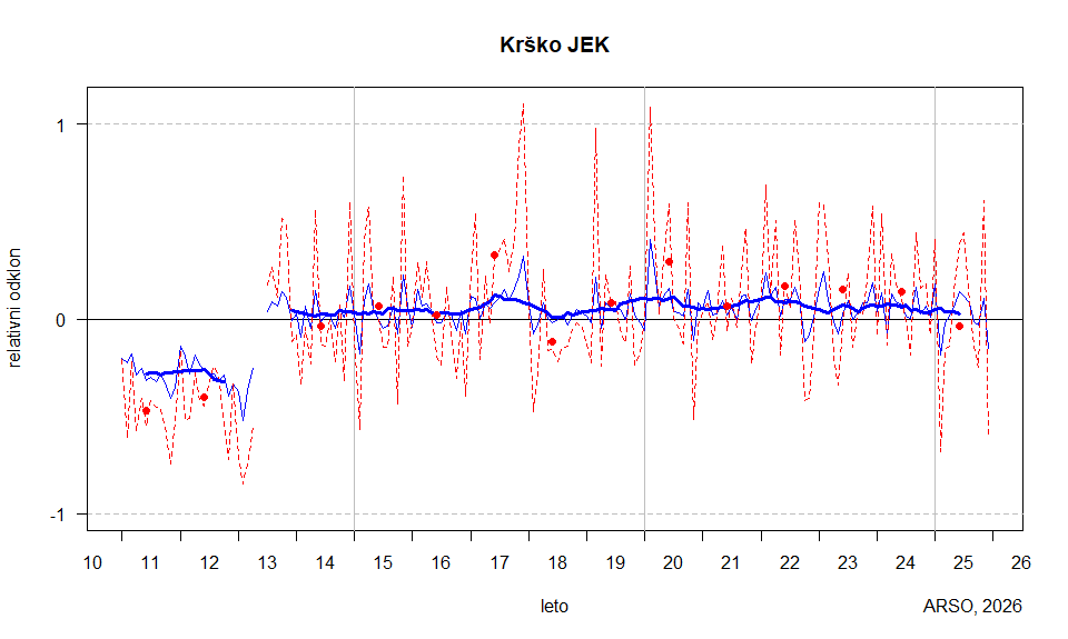 Graf prikazuje relativni odklon hitrosti in njenega kuba (gostote moči) od povprečnega meseca. Za vsak mesec obdobja sta izračunana povprečna hitrost in povprečje kuba hitrosti, ki sta potem odšteta od povprečij vsakega meseca. Relativni mesečni odklon hitrosti je prikazan s tanko modro krivuljo, relativni mesečni odklon kuba hitrosti pa z rdečo črtkano krivuljo. Gladkejša in debelejša modra krivulja predstavlja drseče relativne letne odklone hitrosti od povprečja obdobja, rdeči krožci pa relativne letne odklone kuba hitrosti od povprečnega kuba obdobja. Navpična skala je linearna za vrednosti med –1 in 1, za večje oz. manjše vrednosti pa je stisnjena.